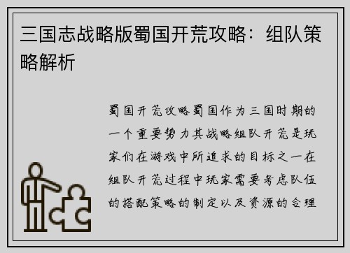 阅读三国英杰传如何快速练级 在《三国英杰传》这款游戏中,快速提升角色等级是玩家们追求的目标之一。本文将从多个方面介绍如何快速练级,并给出一些实用的建议和技巧。 1. 合理选择角色和职业 在开始游戏之前,玩...